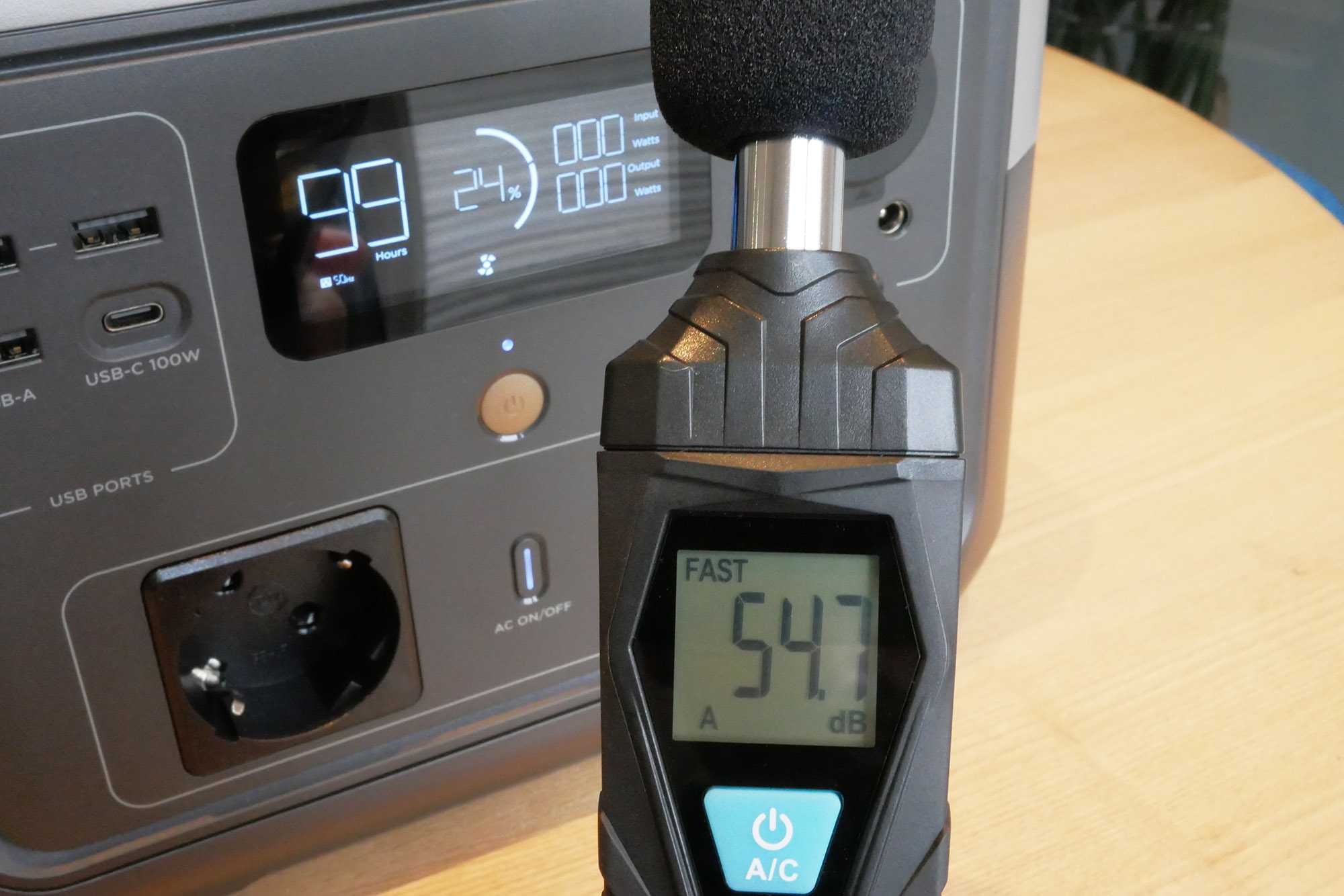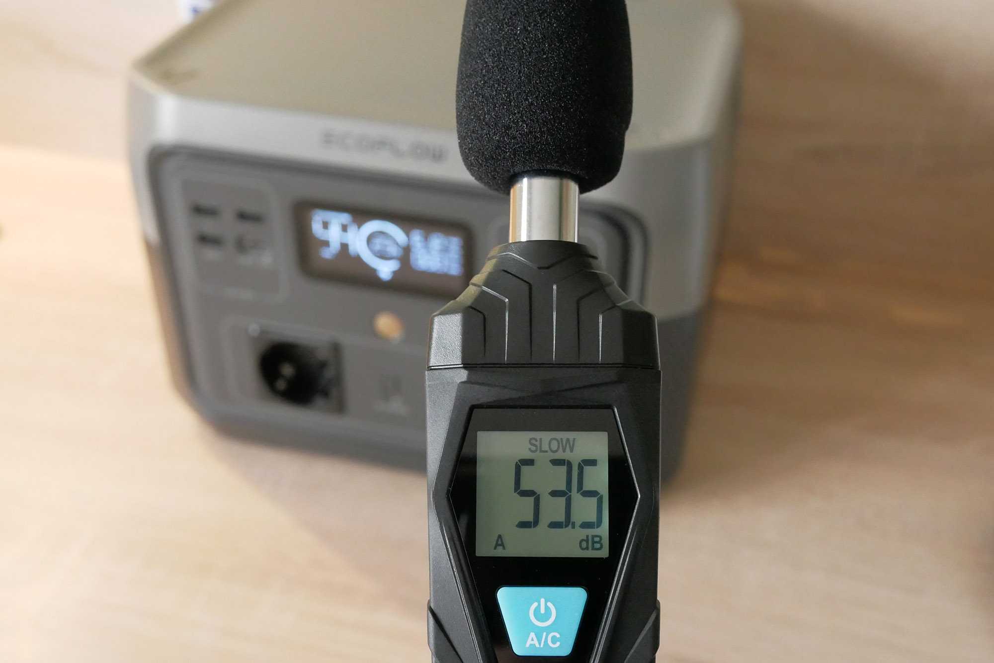 Le ventilateur atteint un volume de 55db mesuré à une distance d’environ 50cm. Il est assez audible et, dès que le bloc de prise AC est activé, même sans aucun appareil branché dessus, le ventilateur se met se met en route par intermittence pour extraire l’air de la batterie (version du système à jour, 2.1.1.47 + 3.1.1.31). Une régulation plus intelligente est à faire à ce niveau.