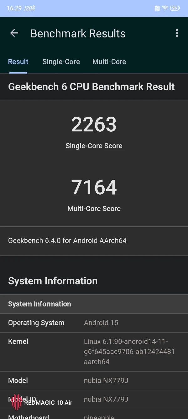 Sur AnTuTu 10.5.1, nous avons atteint 2 131 787, un score qui rivalise avec les meilleurs smartphones gaming du marché. Geekbench 6 confirme cette tendance avec 2 263 points en single-core et 7 164 points en multi-core. Des performances qui font mouche, même face à des terminaux plus récents. En clair, ces scores ne sont dépassés que par les smartphones équipés de Snapdragon Elite.